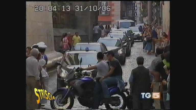 In un servizio del Tg5 che parla della visita del Presidente della Repubblica a Napoli si vede gente in motorino senza casco.