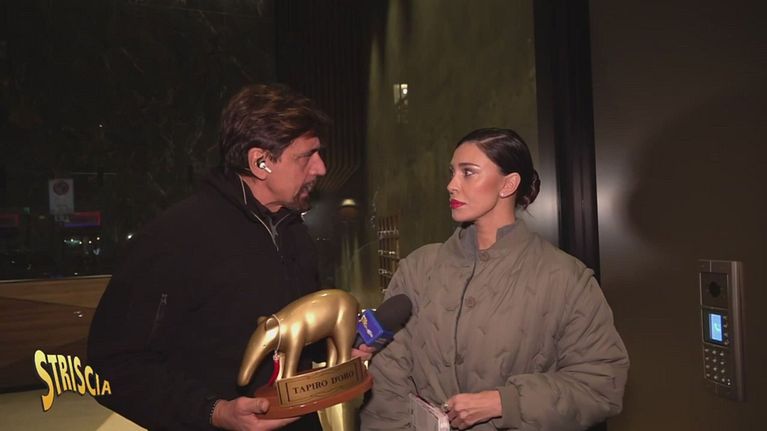 Questa sera a Striscia la notizia (Canale 5, ore 20.35) Valerio Staffelli consegna un Tapiro d'oro di buon auspicio (con al collo un corno portafortuna) a Belén Rodríguez, scomparsa dai riflettori nell'ultimo anno.
