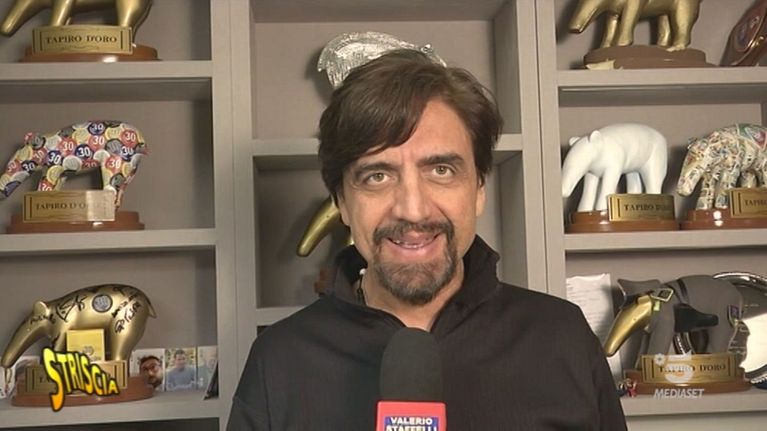 "Pinturicchio", fa il suo ingresso trionfale nello studio di Striscia, accolto da Greggio e Iacchetti. Si è anche cimentato in una performance canora… fuori dalle righe. Avrà usato l'auto-tune?