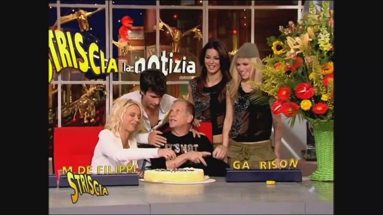 Era l'ultima puntata del tg satirico condotta da Garrison insieme a Maria De Filippi e Kledi Kadiu. I tre salutarono Striscia prendendosi a torte… in faccia!