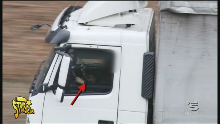 Max Laudadio mostra come alcuni camionisti intenti a guidare non si curino del codice della strada: moltissimi infatti sono intenti ad utilizzare il telefono tra messaggini, messaggi vocali e chiamate.