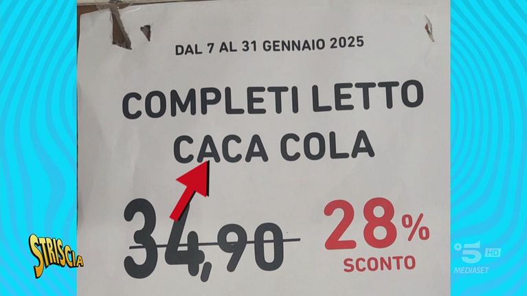 Si parte con un saluto scoppiettante a "Grezzo" e Iacchetti per la nuova puntata di "Striscia il Cartellone". I Cartelli ci mostrano poi un'abitazione con annessa camera ardente e prodotti in vendita imperdibili: "caca cola" in sconto del 28%. Ecco a voi la selezione del nostro Cristiano Militello