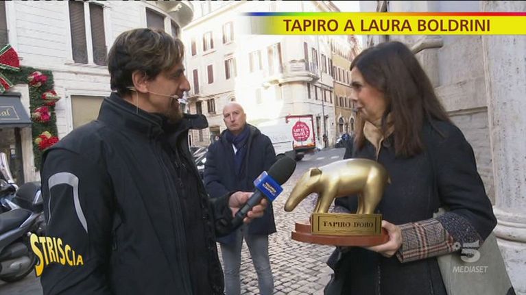Valerio Staffelli consegna il Tapiro d'oro a Laura Boldrini che nel 2018, in occasione della decima edizione del MoneyGram Awards per imprenditori immigrati, premiò come migliore imprenditrice straniera Marie Therese Mukamitsindo, suocera di Aboubakar Soumahoro, oggi indagata per truffa aggravata e false fatturazioni nell'ambito dell'indagine della procura di Latina sulla gestione di due cooperative. Ecco come ha replicato l'ex Presidente della Camera