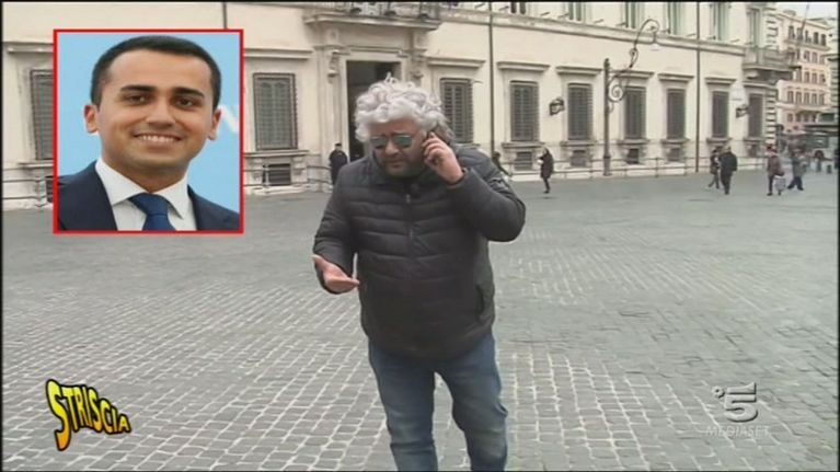 Sergio Friscia veste i panni del leader del MoVimento 5 Stelle Beppe Grillo e sente Luigi Di Maio, l'erede dei suoi spettacoli comici.