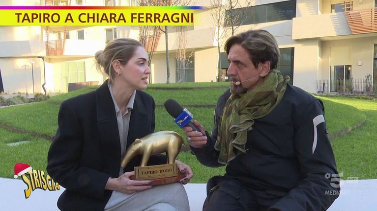 L'ironia sulla campagna pubblicitaria di Tiziano Ferro, il caso del pandoro Balocco, le dichiarazioni di Fabrizio Corona sui presunti tradimenti del rapper e le voci secondo cui il loro cane faceva i bisognini dentro casa. I trofei di Striscia vinti dall'influencer e dal cantante