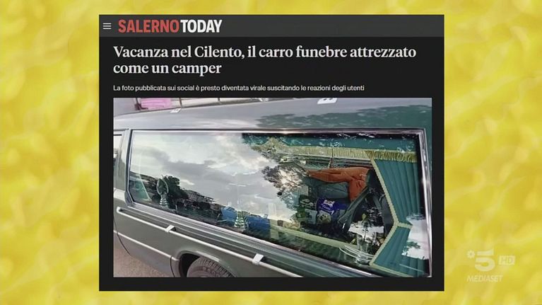 Nel pre puntata di martedì 26 marzo 2024 Gerry Scotti e Francesca Manzini ci parlano di un carro funebre usato come camper