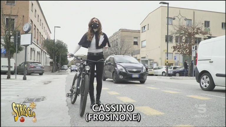 Chiara Squaglia si trova a Cassino, in provincia di Frosinone, dove da qualche mese è comparsa una corsia ciclabile bizzarra, che si sdoppia e occupa l'intera carreggiata causando non pochi disagi