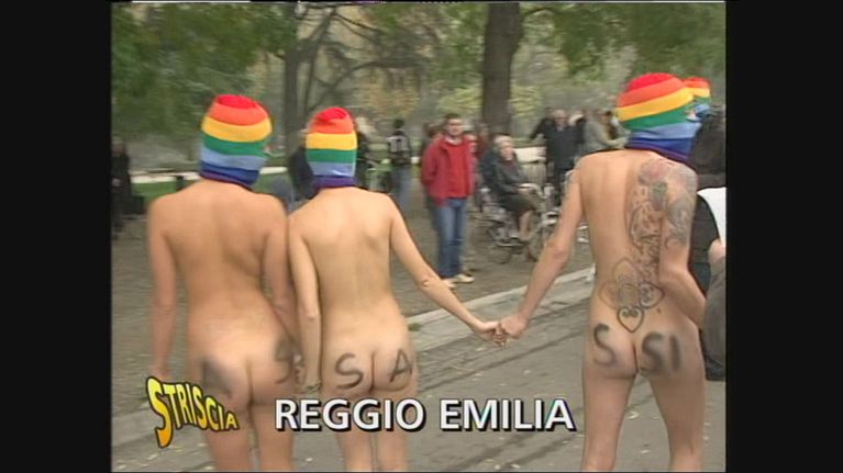 A Reggio Emilia, durante la festa delle Forze Armate del 4 novembre, alcune ragazze di un centro sociale si sono spogliate e hanno manifestato contro la guerra indossando soltanto un passamontagna.
