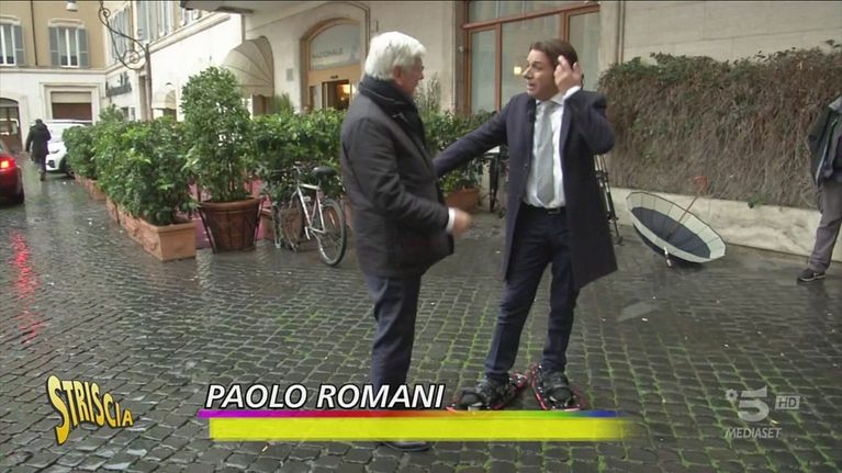 Dario Ballantini nei panni di Giuseppe Conte sembra essere in cerca di un'auto blu, ma - chissà - potrebbe anche prendere un taxi, se lo paga Renzi con soldi sauditi. Con le ciaspole ai piedi si aggira, dopo le vacanze a Cortina, tra i politici italiani e ironizza su questioni bollenti.