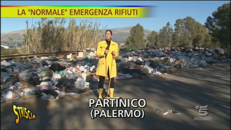 Stefania Petyx è a Partinico (Palermo) per parlarci dell'attuale emergenza rifiuti: in molte strade del paese ci sono sacchi di immondizia che vengono ammassati quotidianamente, data l'assenza di un ritiro della spazzatura.