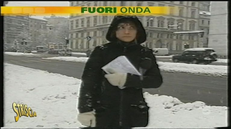 Fabio Tricoli conduce un'edizione di Studio Aperto dalle strade innevate di Milano
