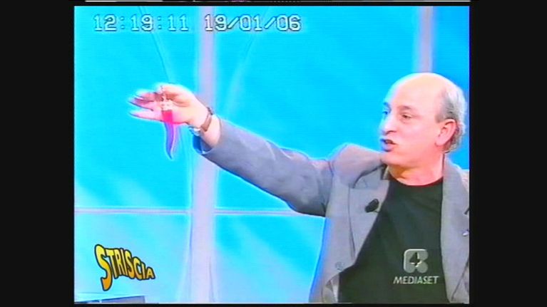 Nel programma di Rete 4, Forum, si parla di superstizioni e un signore contro il gatto nero si arma di corni e amuleti che mostra in aula.