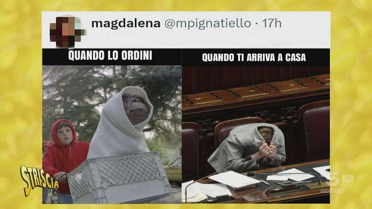 La premier in Parlamento reagisce a una frase di Angelo Bonelli dei Verdi infilando la testa dentro la giacca. E i creatori di umorismo social non potevano perdere un'occasione così