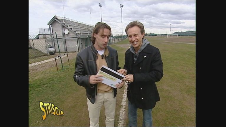 Bobo Vieri cade dalle scale di Striscia