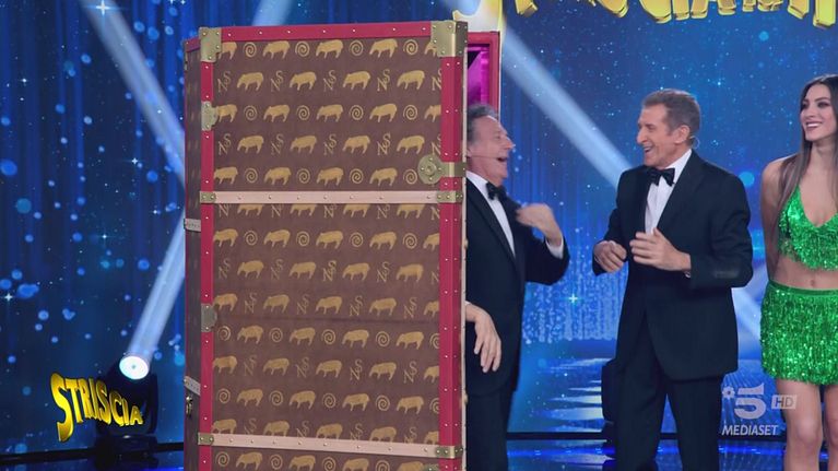 È proprio Mattarella-Ballantini a dare inizio alla quarta puntata di Striscia. Dal baule alle sue spalle escono tutti i protagonisti del tg satirico… o quasi. Vediamo cos'è capitato a Iacchetti