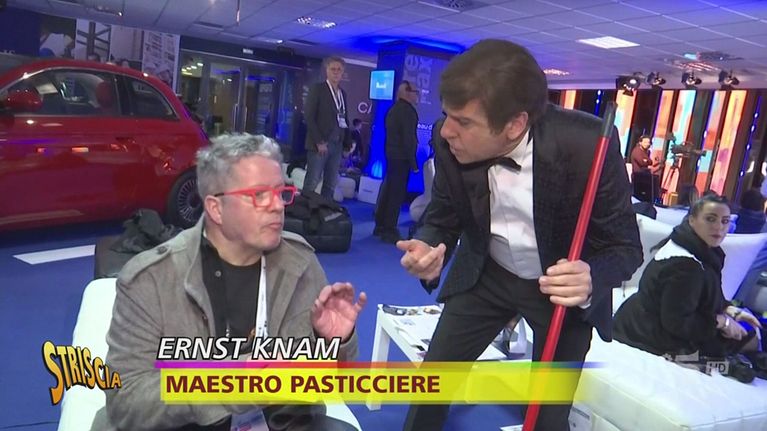 Il trasformista di Striscia si aggira tra i cantanti del Festival con tanto di scopa, per risolvere tutti i problemi del Festival e non solo.