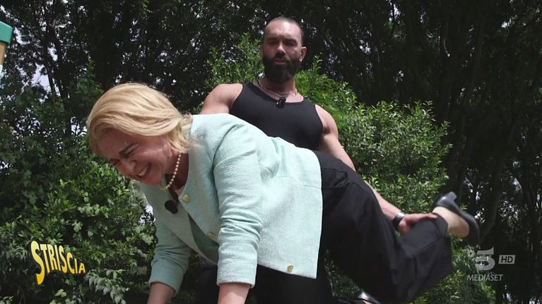 La nostra presidente della Commissione Europea, interpretata da Valeria Graci, si allena con il personal trainer per prepararsi all'estate, cimentandosi in alcuni esercizi a corpo libero. Da quelli per i glutei agli allungamenti. Ma l'unica cosa che vorrebbe estendere è il suo mandato a Bruxelles