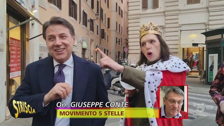 La segretaria del Pd interpretata da Giuseppe Longinotti sul trono e con la corona in testa dopo la vittoria alle elezioni regionali in Sardegna incontra il leader M5S: "Per le regionali in Abruzzo cosa prepariamo al buffet? Ostriche o aragoste?"