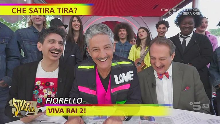 Fiorello è in possesso dell'agenda della Meloni con l'appuntamento dal logopedista per riuscire a dire il 25 aprile la parola "antifascista" e ha pure trovato il monologo di Scurati nel disco di Taylor Swift. Nando Timoteo ci ricorda poi che il Comune di Roma festeggia il suo compleanno spegnendo 2777 autobus, ops, candeline