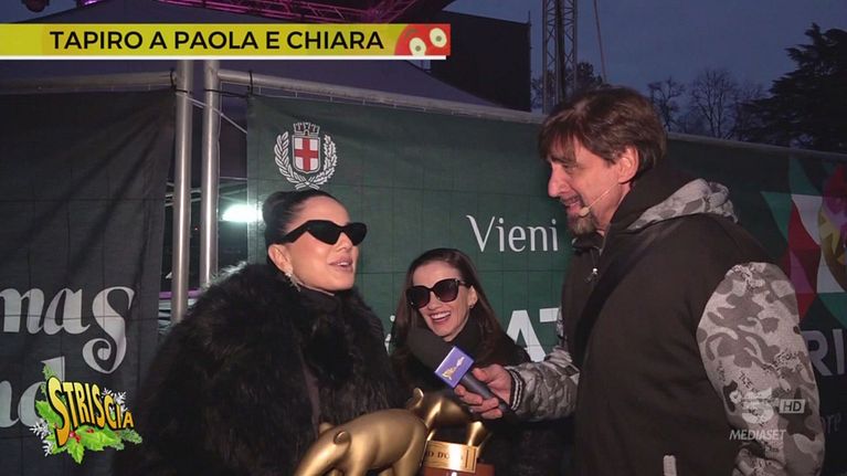 Dopo la clamorosa esclusione dal Festival, il nostro Valerio Staffelli ha consegnato un doppio Tapiro alle due cantanti, che sembrano averla presa bene: «Ci siamo fatte escludere apposta per ricevere il Tapiro d'oro. Siete pazzeschi, perché di solito ci danno sempre un premio in due»
