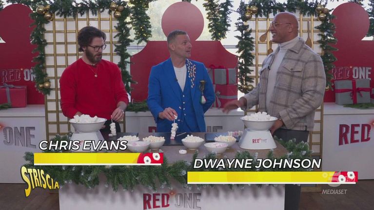Riccardo Trombetta è in missione speciale al polo nord per incontrare Dwayne Johnson e Chris Evans in occasione dell'uscita al cinema del loro nuovo film. Un'esplosiva avventura natalizia piena di azione e fantastici effetti speciali. L'inviato sfida gli attori a realizzare un pupazzo di neve fatto di marshmallow con una sola mano, per vincere il suo regalo di Natale. Chi vincerà?