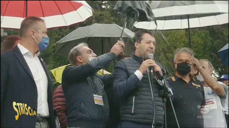 Durante un comizio, Salvini si è inzuppato per bene per via di un ombrello che fa le bizze: ecco il video esilarante