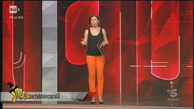 Canottiera nera e pantaloni arancioni a #cartabianca