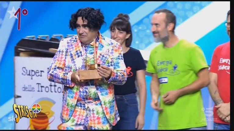 Anna Falchi in abito floreale, Elio e il sobrio vestito in pied de"poule stile arcobaleno, Orietta Berti in fucsia al Cantante Mascherato