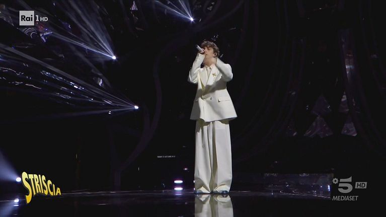 Nella rubrica di Striscia dedicata ai look più improbabili troviamo Fiorella Mannoia fasciata in un abito lungo tutto lavorato, ma è a piedi scalzi. Seguono i membri di La Sad, con i capelli colorati e una specie di scheletro sotto le giacche. C'è poi Sangiovanni con un abito oversize bianco. Il "Premio punto e croce al merito" è invece dei Ricchi e Poveri e del loro gigantesco fiocco rosso.