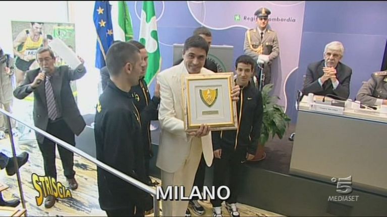 La Guardia di Finanza ha consegnato un riconoscimento a Striscia che ha ritirato l'inviato Moreno Morello