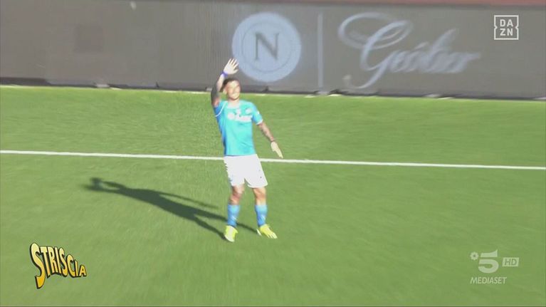 A "Striscia lo striscione" Cristiano Militello raccoglie i momenti più divertenti della giornata di serie A, come lo stop mancato del giocatore del Napoli abbagliato dal sole, o lo schema del Genoa che ha messo in crisi l'allenatore azzurro. Mentre Vlahovic indossa le calze contenitive…