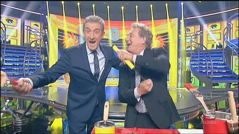Gerry Scotti sfonda il bancone di Striscia