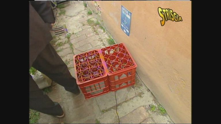 Romano Prodi a una convention per essere più alto della folla si alza in piedi su due cassette di plastica.