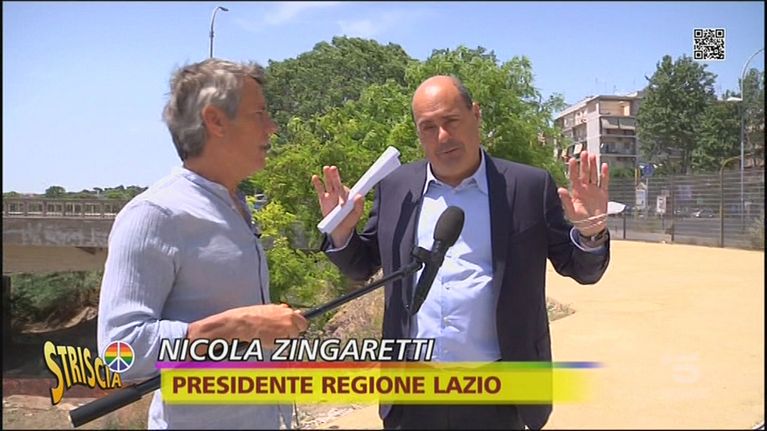 Jimmy Ghione intervista il Presidente della Regione Lazio Nicola Zingaretti per parlare delle condizioni in cui versano alcuni tratti del letto del Tevere, pieni di rifiuti e relitti di barche abbandonati. Il nostro inviato riesce a strappare delle promesse