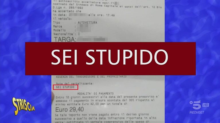 Riccardo Trombetta racconta la storia di una donna che, dopo aver parcheggiato sulle strisce blu, riceve una contravvenzione con una frase molto singolare