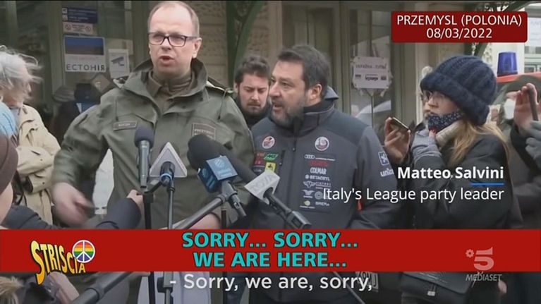 Matteo Salvini è volato in Polonia, vicino al confine con l'Ucraina per consegnare degli aiuti, ma è stato accolto non troppo calorosamente dal sindaco di Przemysl che ha tirato fuori una maglietta con stampato il volto di Putin per rinfacciare al leader della Lega le sue vecchie posizioni