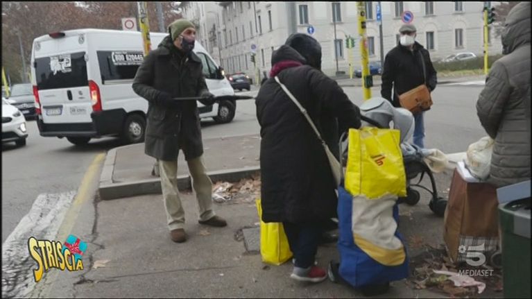 Max Laudadio si trova davanti alla sede di Pane quotidiano, associazione di volontari che fornisce pacchi di viveri alle persone bisognose, perché purtroppo ha scoperto che in mezzo a chi davvero ne ha necessità ci sono delle persone senza scrupoli che si approfittano della situazione per rivendere la merce donata