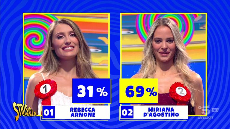 Continuano le selezioni per la scelta della nuova Velina bionda del tg satirico: questa sera il pubblico ha scelto Miriana D'Agostino di Vimercate, 24 anni, che ha ottenuto il 69% delle preferenze.