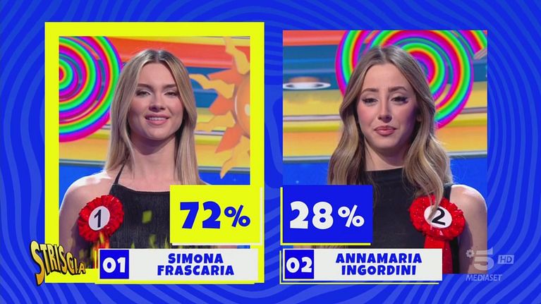 Continuano le selezioni per la scelta della nuova Velina bionda del tg satirico: venerdì 17 gennaio 2025 il pubblico ha scelto Simona Frascaria che ha ottenuto il 72% delle preferenze.
