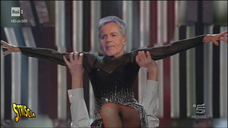 Strana figura su palco dell'Ariston