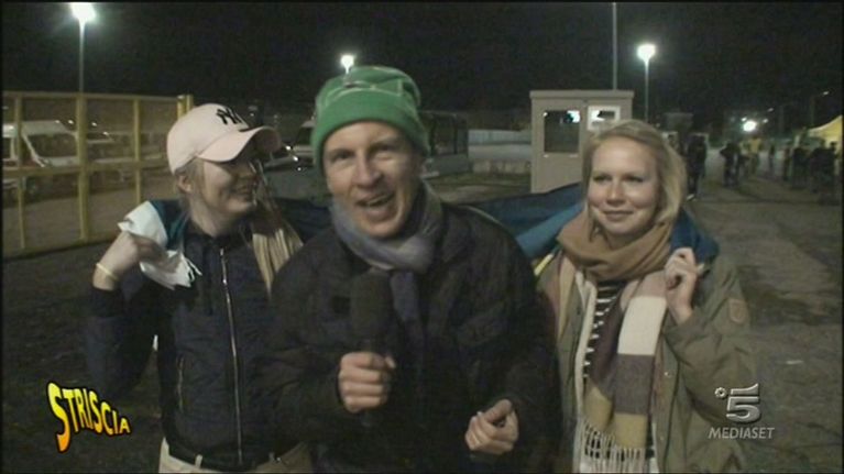 Militello è allo stadio di San Siro (Milano) per commentare insieme alcuni degli striscioni più belli della partita di qualificazione ai Mondiali, Italia-Svezia.