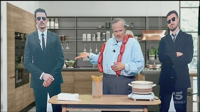 Nel pre puntata di lunedì 19 aprile Gerry si collega con Paolo Marchi, alias Michelle Hunziker, per presentarci un piatto molto complicato, la pasta al burro