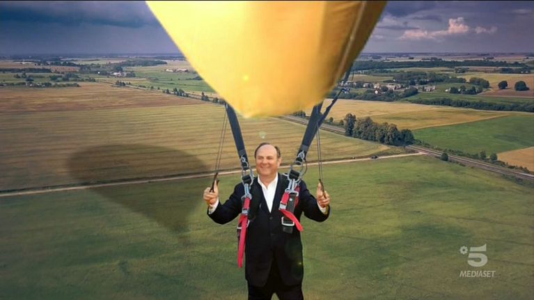 Gerry Scotti e Michelle Hunziker nel pre puntata di venerdì 8 aprile 2022 ci mostrano i filmati dei loro lanci col paracadute