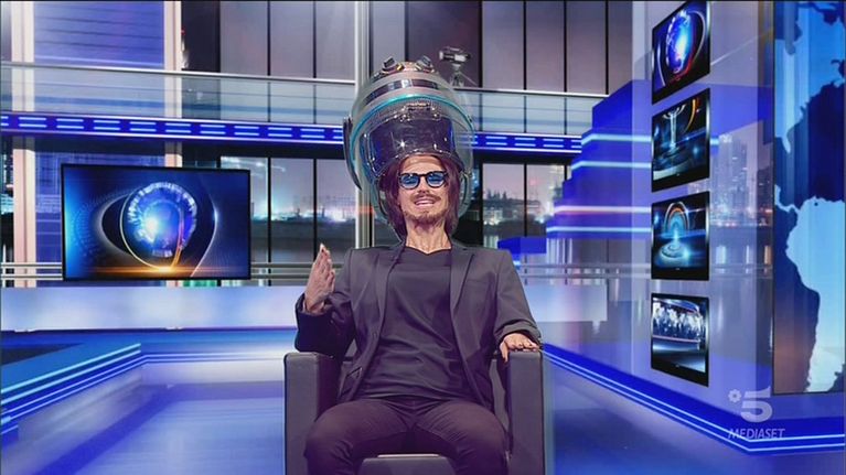 Gerry Scotti e Marco Camisani Calzolari alias Michelle Hunziker, introducono la puntata di venerdì 6 maggio 2022