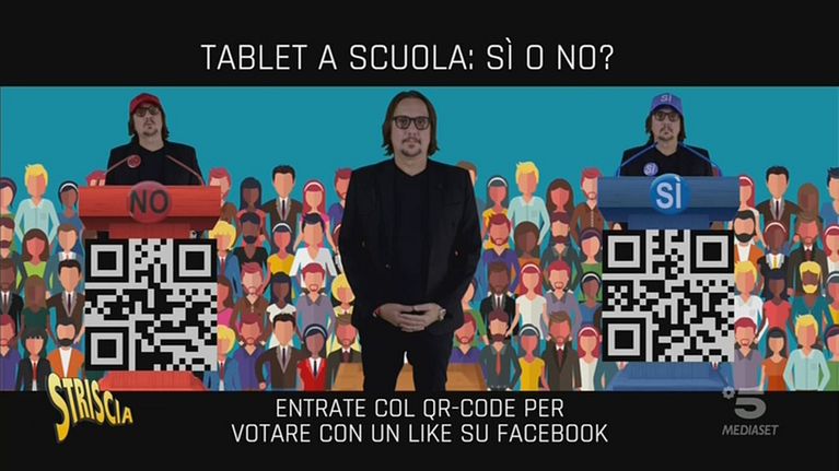 MCC ci parla di tablet a scuola e mostra le diverse posizioni, tra favorevoli e contrari. Il nostro consulente, poi, lascia la possibilità agli spettatori di votare da che parte stanno, grazie al QR Code