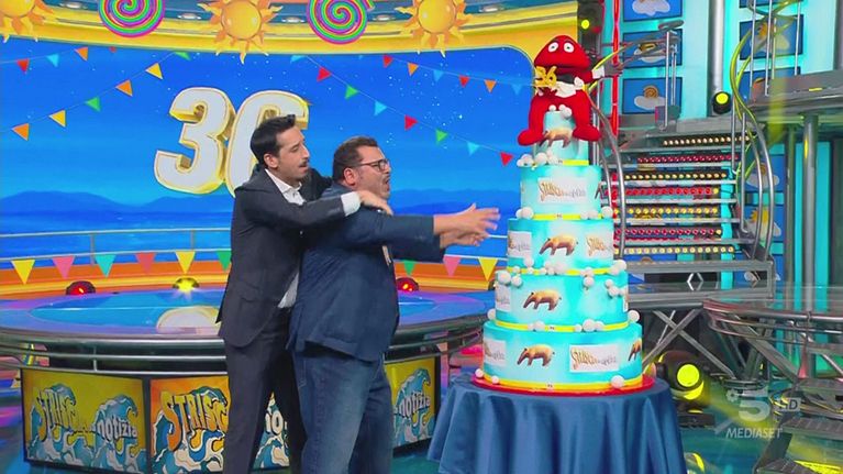Sergio Friscia e Roberto Lipari festeggiano il 36esimo compleanno del tg satirico di Antonio Ricci con rime e torte monumentali