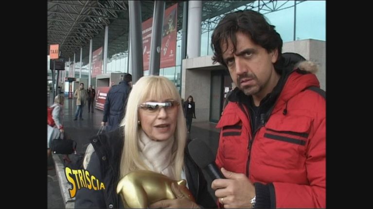 Valerio Staffelli insegue il taxi sul quale viaggia Raffaella Carrà per consegnarle il Tapiro d'oro.