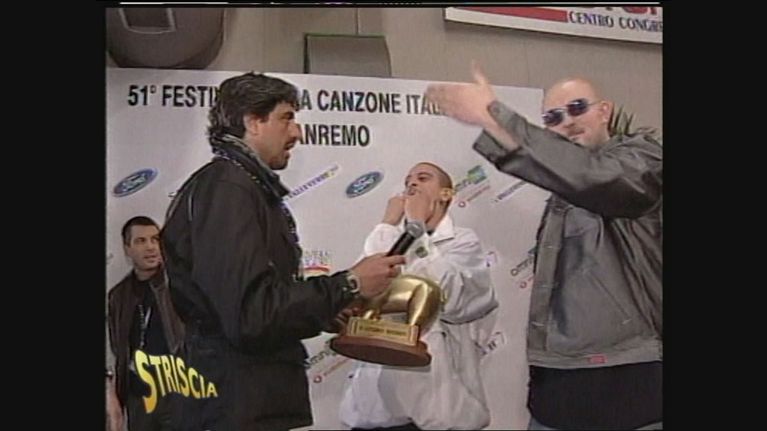 Valerio Staffelli ha consegnato il tapiro d'oro ai Sottotono per il presunto plagio della canzone "Bye Bye" degli Nsync.