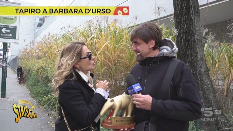 Valerio Staffelli consegna a Barbara d'Urso un Tapiro d'oro "benaugurante" per essere rimasta lontana dalla tv nell'ultimo anno. Incalzata da Staffelli la conduttrice dichiara: «Va tutto bene, con nessuno è successo niente e voglio bene a tutti». E, paragonandosi a Pippo Baudo, dice: «Le "luci della d'Urso" le ho inventate io, ora ce le hanno tutti. Quando tornerò in tv - perché tornerò prima o poi - dovrò triplicarle»
