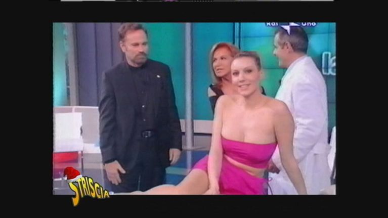 Esilarante scambio tra Lorella Cuccarini, Greggio e Iacchetti a Striscia. I due conduttori hanno entrambi una freccia ad altezza deretano ma Enzino si lamenta del fatto che quella di Ezio sia posizionata più in alto...